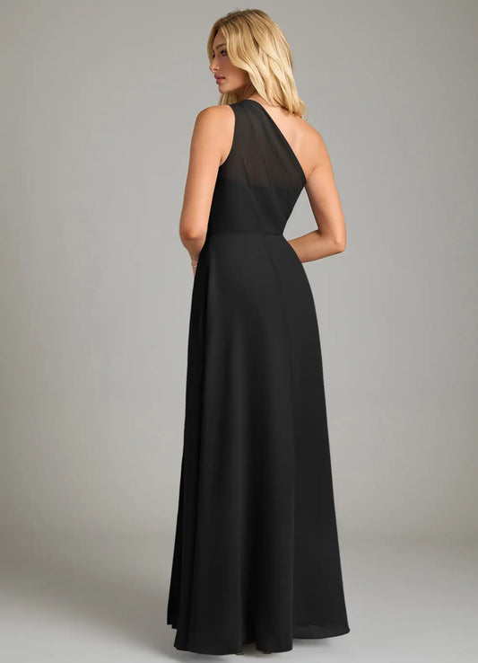Chic A-Line Chiffon One Shoulder Sleeveless Sheer Back Floor Length Bridesmaid Dress