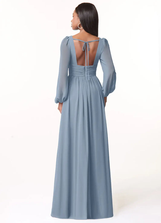 Elegant A-Line Satin Square Neck Puff Sleeve Bow Back Floor Length Bridesmaid Dress