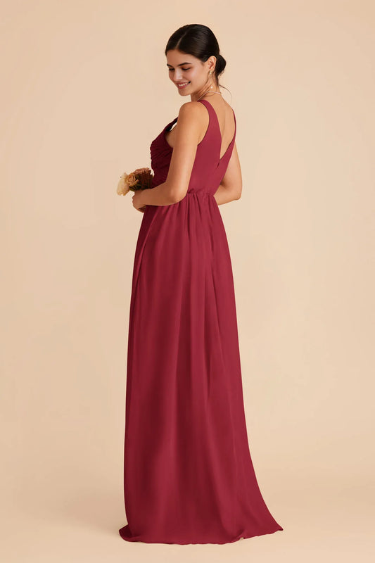 Modern A-Line Chiffon Deep V Sleeveless Open Back Floor Length Bridesmaid Dress