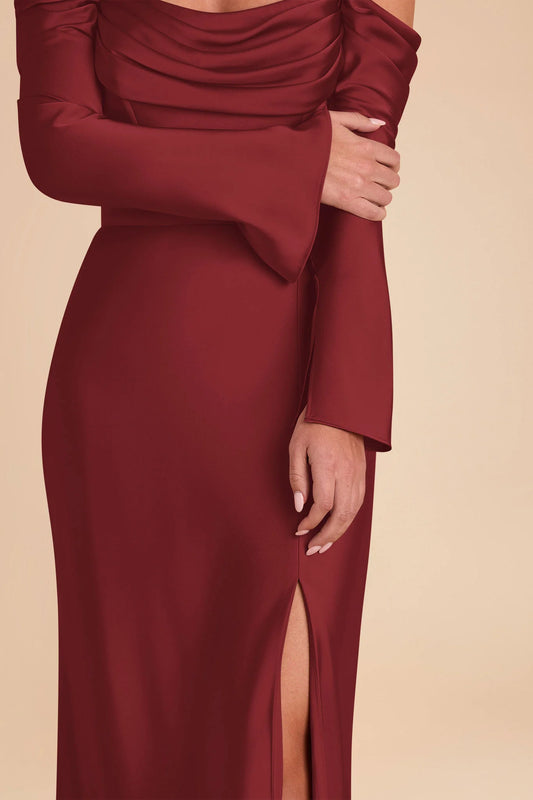 Elegant Sheath Satin Off the Shoulder Long Sleeve Open Back Floor Length Bridesmaid Dress