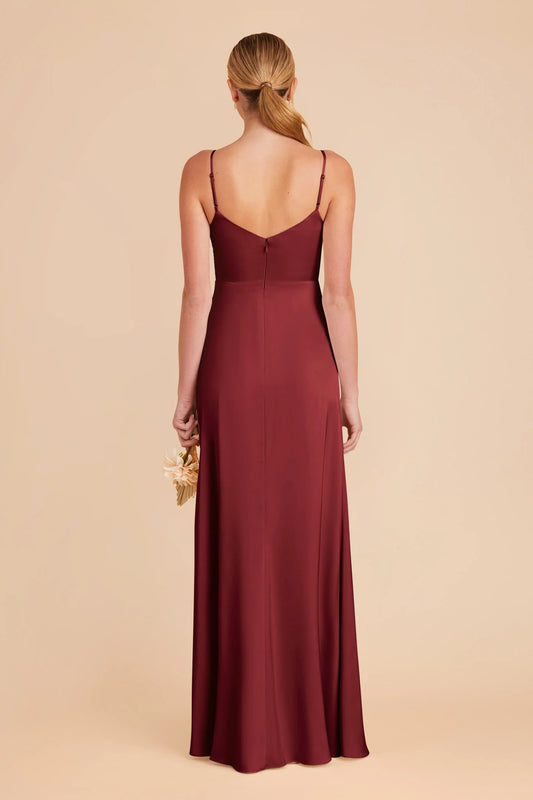 Sleek Fitted Satin V Neck Sleeveless Cross Back Floor Length Bridesmaid Dresses