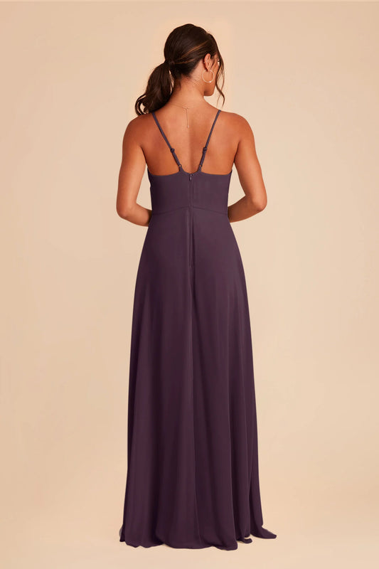 Graceful Plum Square Neck Sleeveless Chiffon Maxi Bridesmaid Dress
