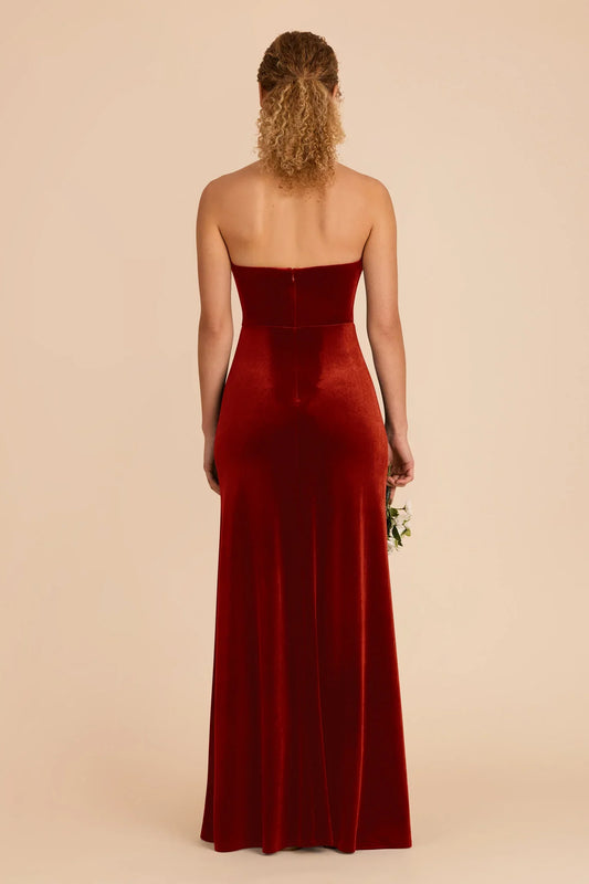 Rich Burnt Orange Velvet Square Neck Maxi Bridesmaid Dress with Adjustable Straps & High Side Slit