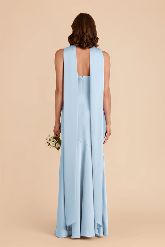 Elegant Sky Blue Satin Halter-Neck Sleeveless Back Zip Floor-Length Bridesmaid Dress