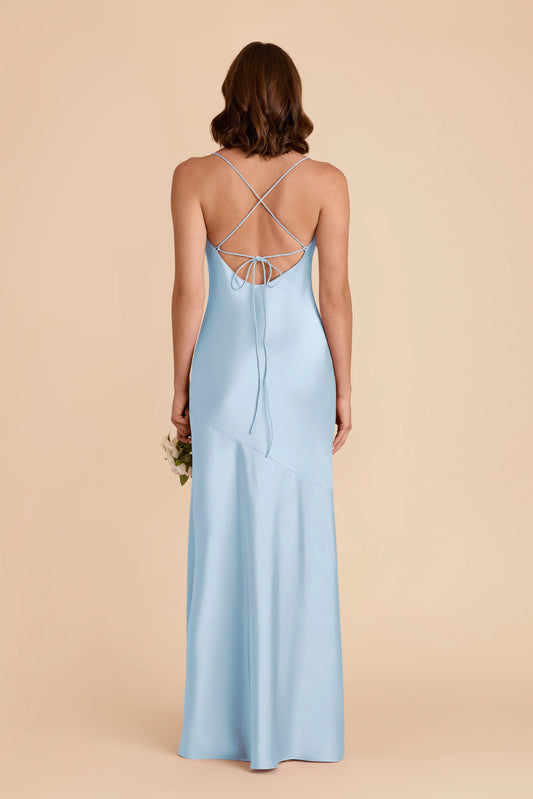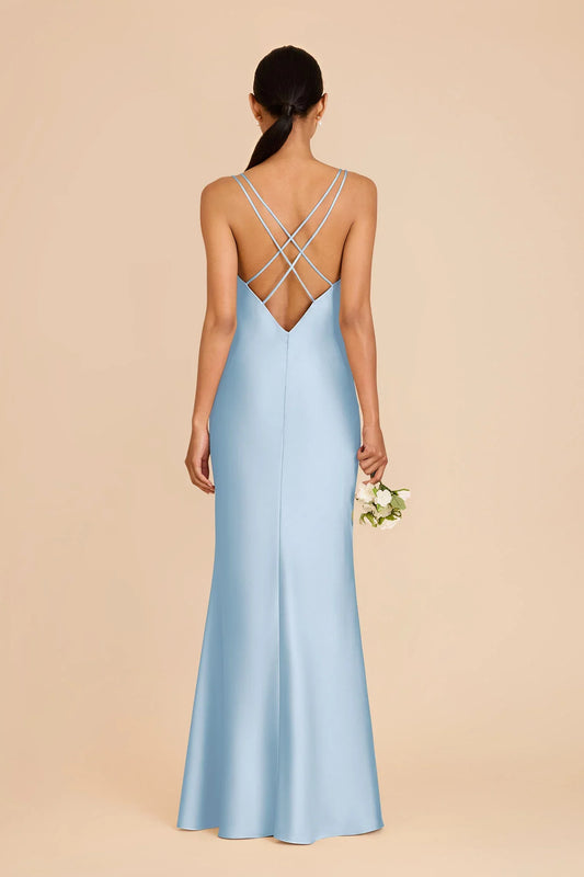 Sleek Sky Blue Satin Deep V-Neck Mermaid Maxi Bridesmaid Dress with Multi-Crisscross Back