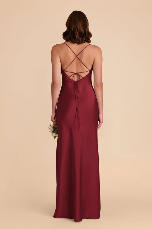 Sleek Mermaid Satin Cowl Neck Spaghetti Strap Crisscross Back Floor Length Bridesmaid Dress