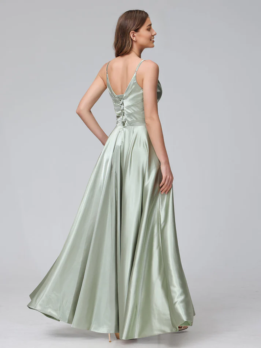 QIAIWAN Dress satin long silk sleeveless bridesmaid dress