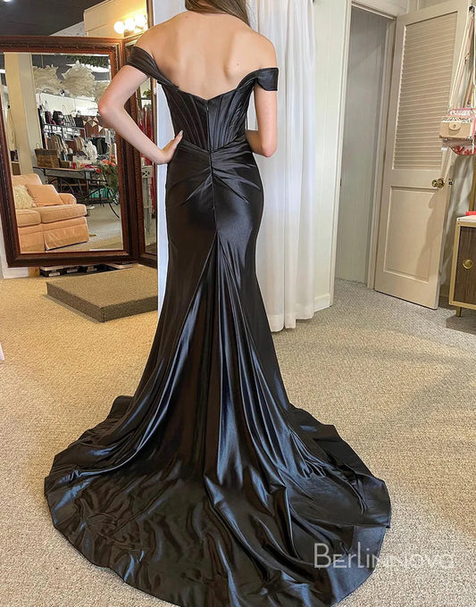 QIAIWAN Elegant Mermaid Satin Off Shoulder Evening Dress