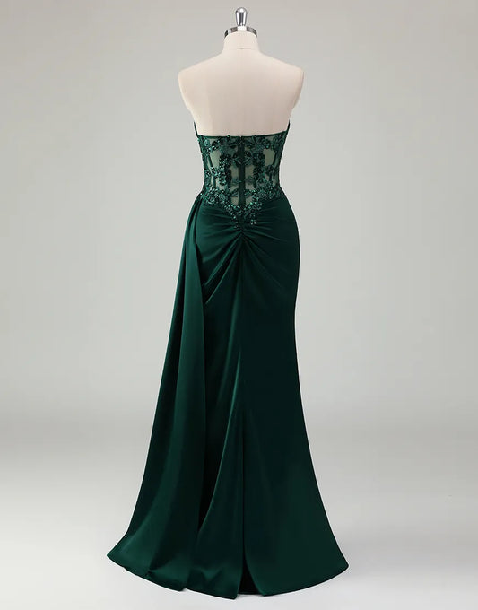 QIAIWAN's Mermaid Satin Lace Ball Dress with Full Charm