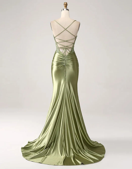 QIAIWAN Dress Mermaid Satin Backless Sleeveless Ball Dress