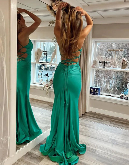 QIAIWAN Dress satin mermaid sleeveless backless ball gown