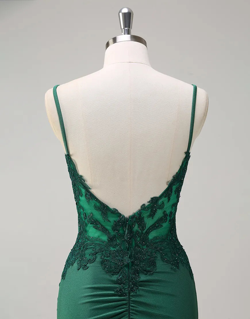 QIAIWAN's charming mermaid slim shoulder strap sleeveless tight ball dress