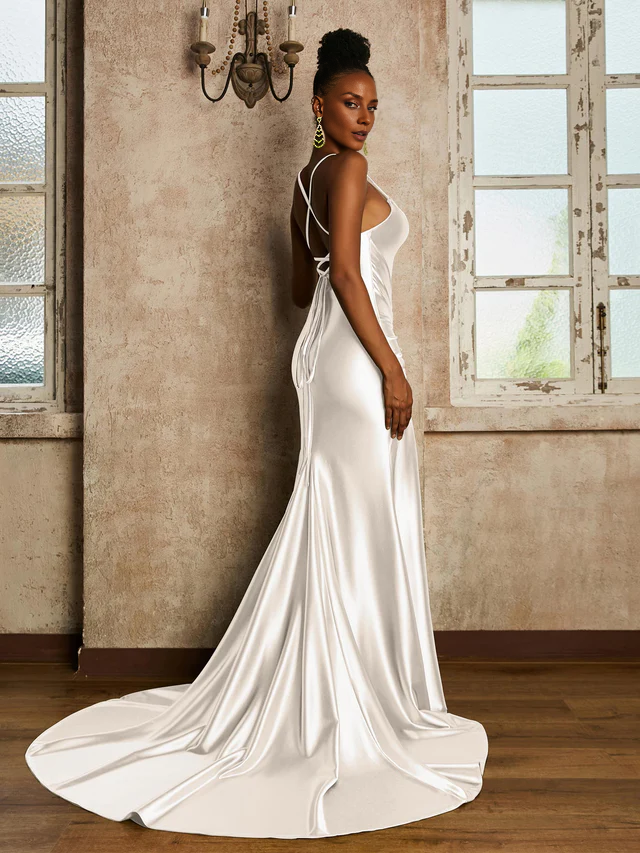 Waist pleated mermaid stretch satin Prom Dresses QIAIWAN Dress